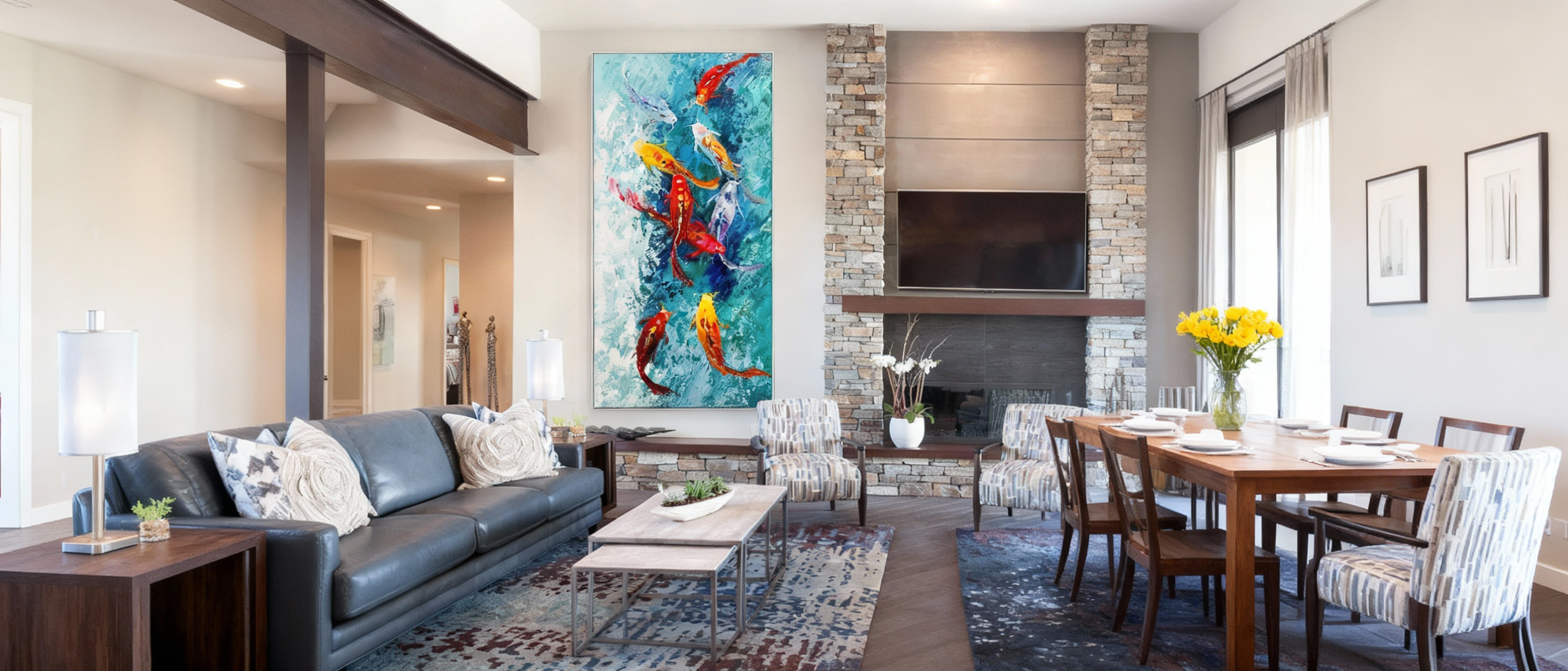 Consider your wall size, color scheme, and lighting. Use our size guide or ask us for suggestions. Abstracts, florals, nature scenes, and textured art all bring different moods to a space.