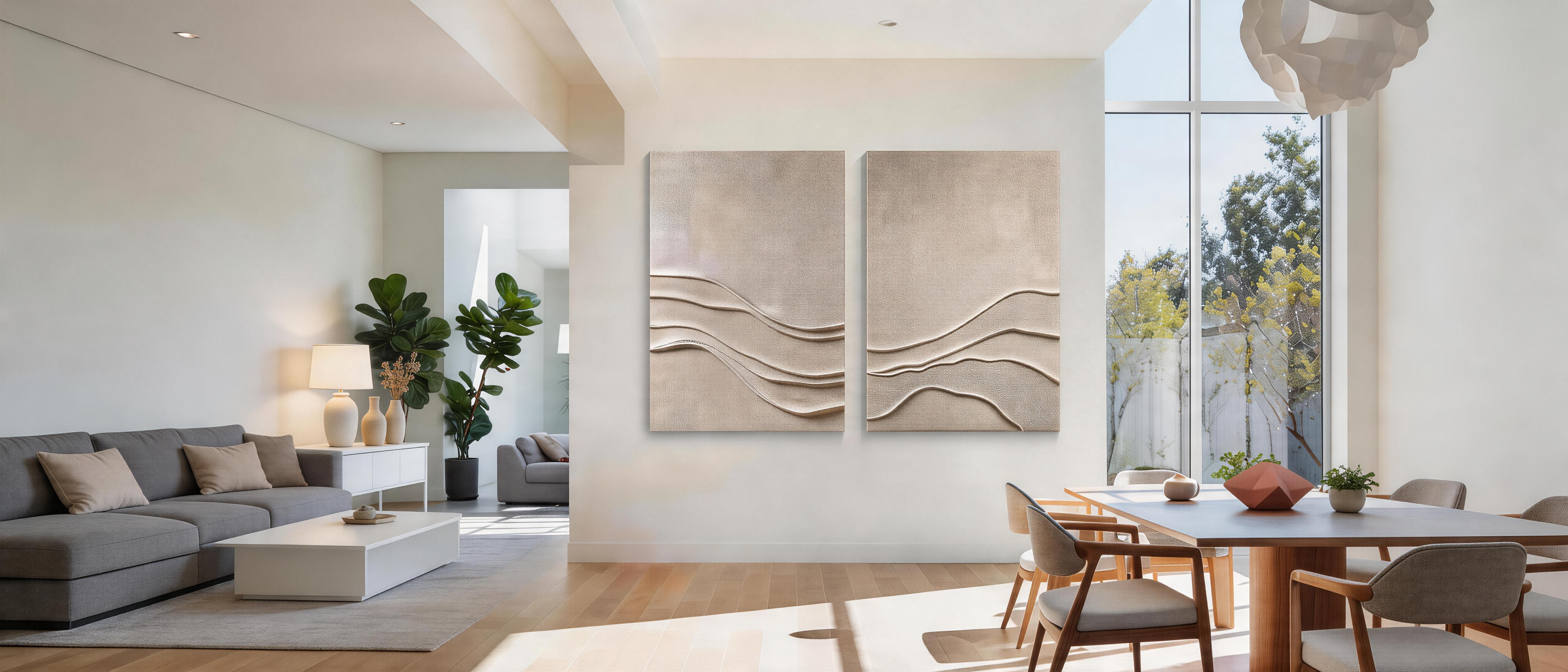 As renowned designer Kelly Wearstler has said, wall art plays a key role in shaping the emotional tone of a space. In 2026, the trend moves toward soft tones, subtle textures, and gentle abstraction, creating calm, comfortable interiors that feel more grounded and inviting.