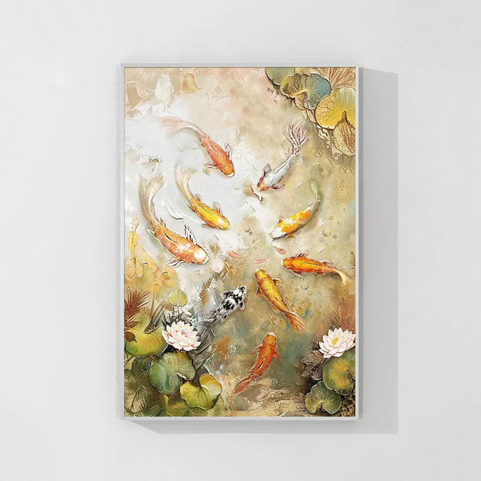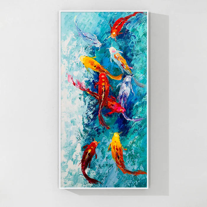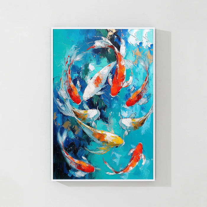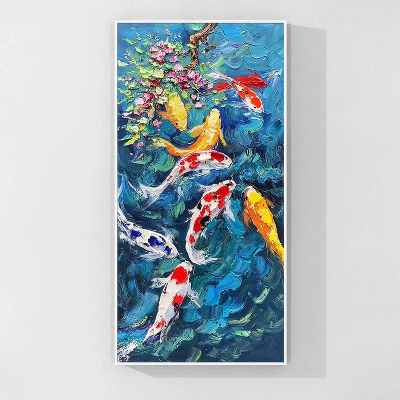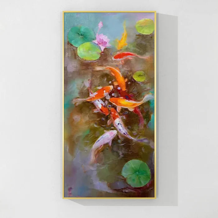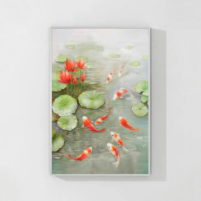 Our koi fish paintings are thoughtfully created using premium, eco-friendly materials and high-quality paints to ensure lasting brilliance and detail. From bold, vibrant orange and red koi fish canvases to serene, minimalist black and white koi art, each piece offers a unique perspective on this beloved subject.